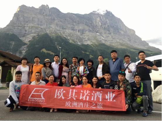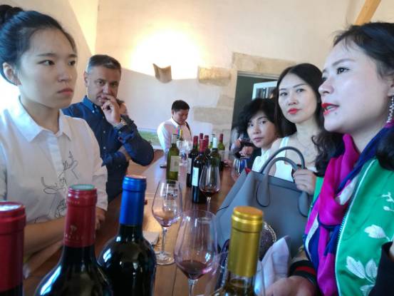 歐其諾考察團(tuán)到達(dá)格拉夫-吉尼亞酒莊(捧著酒的是莊主布魯諾先生)