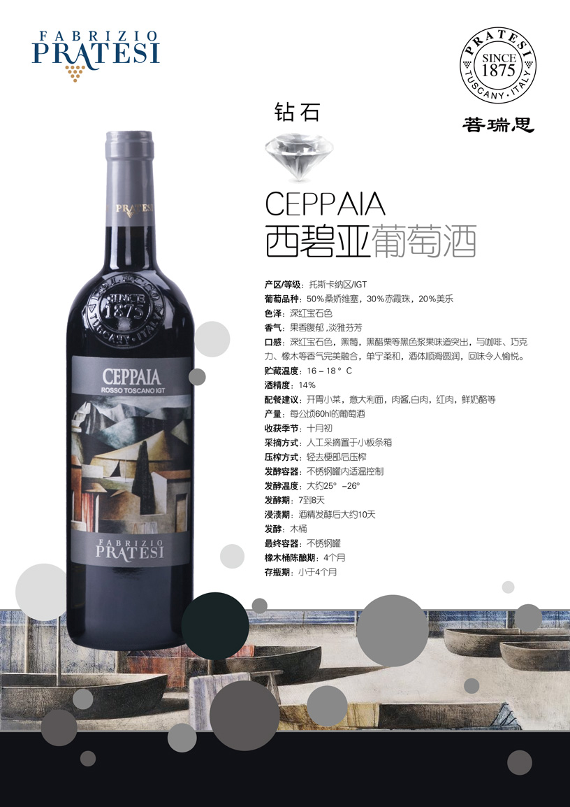 葡萄品種:桑嬌維賽sangiovese, 赤霞珠Cabemet Sauvigno 美樂Merlot
