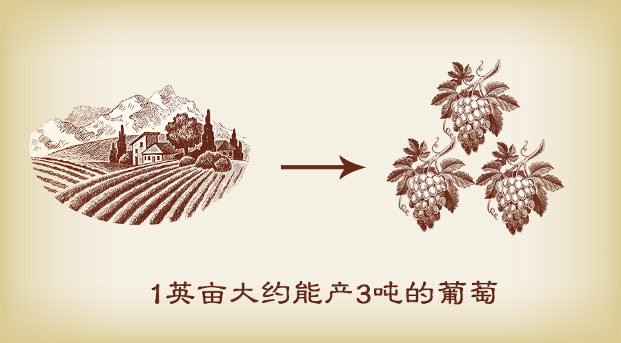 葡萄的產(chǎn)出數(shù)量其實沒那么固定,但我們能取個典型值來估算個大概。全球優(yōu)質(zhì)酒的標準產(chǎn)量是3噸/英畝,我們以這個產(chǎn)量為例——