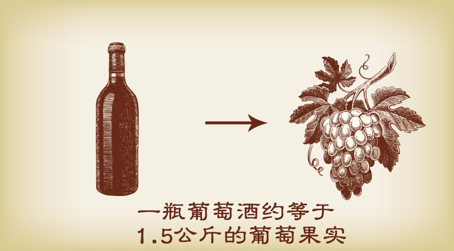 換言之,一瓶葡萄酒約等于1.5公斤的葡萄果實!