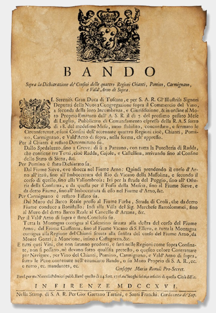 1716年,卡米亞諾和其他三個托斯卡納葡萄酒子產(chǎn)區(qū)一起,被當(dāng)時佛羅倫薩的統(tǒng)治者美第奇家族的大公爵柯西莫三世(Granduca Cosimo III de’Medici),選為托斯卡納大公國的四大專屬葡萄種植產(chǎn)區(qū),致力于生產(chǎn)優(yōu)質(zhì)的葡萄酒。